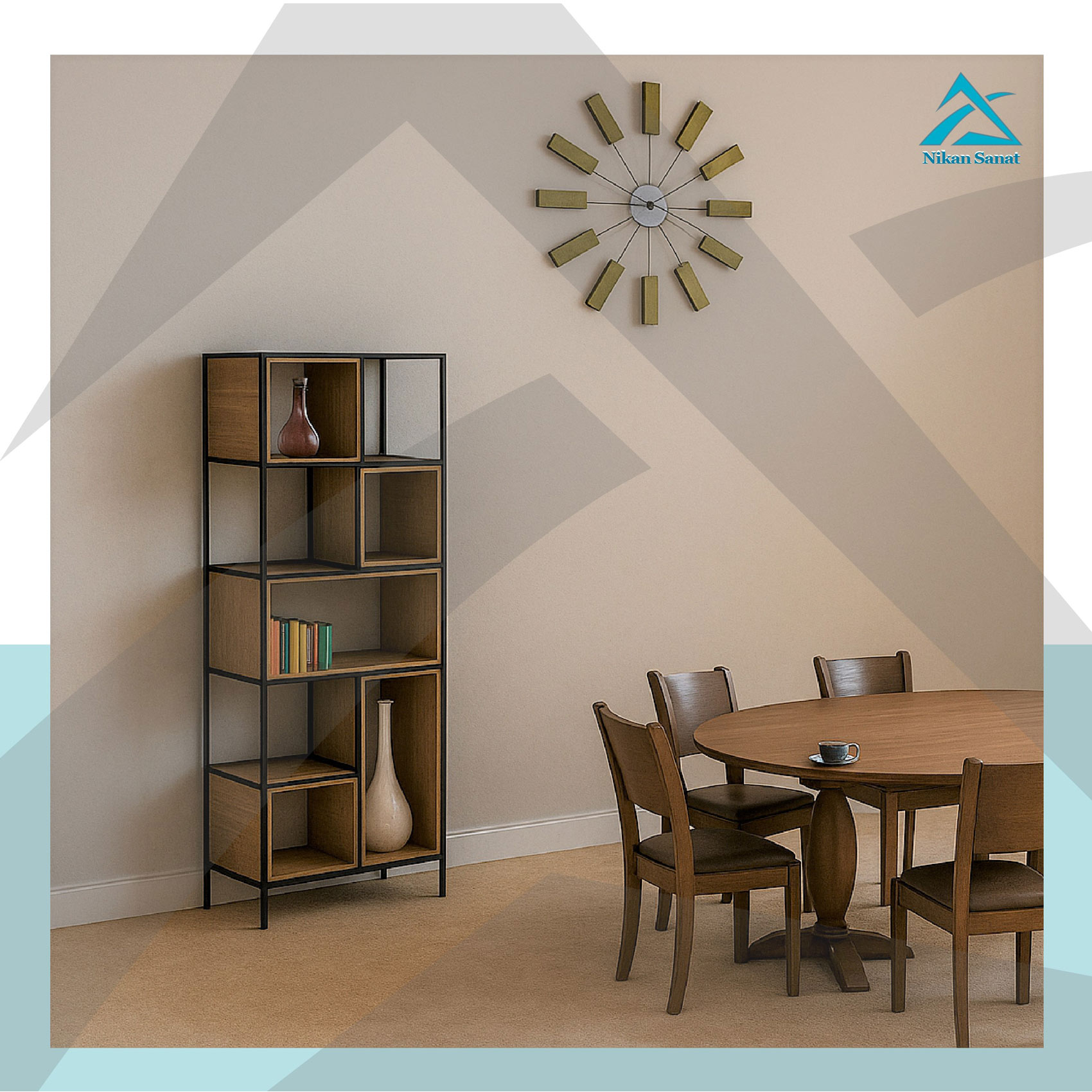 - اکسسوریهای دکوراتیو: قابعکس، آینه، نگهدارندههای دیواری، قفسههای ترکیبی، دکوراسیون فضای عمومی